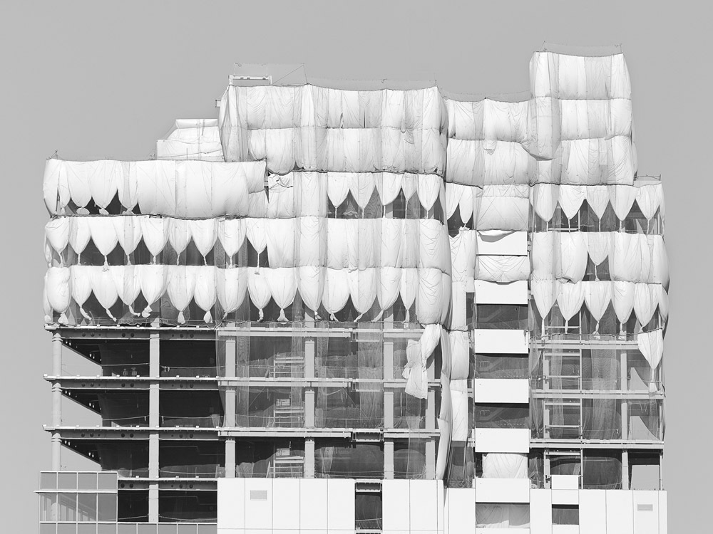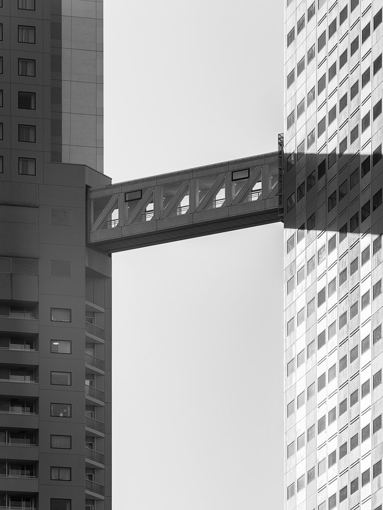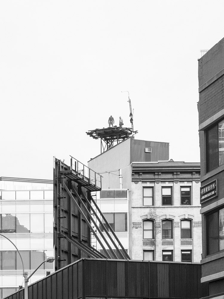 When people appear in the images they are dwarfed by the vastness of the urban landscape. There is something actively dehumanizing about the scale shifts that occur between the figures and structures. In some of the more unsettling images there’s a palpable sense of voyeurism, as if the people pictured exist within an urban art farm, of sorts. They are observed in their “natural environment”, but are blissfully unaware that they are being watched. The people in these photographs are not individuals so much as symbolic markers of the dislocation of our technological urban centers.