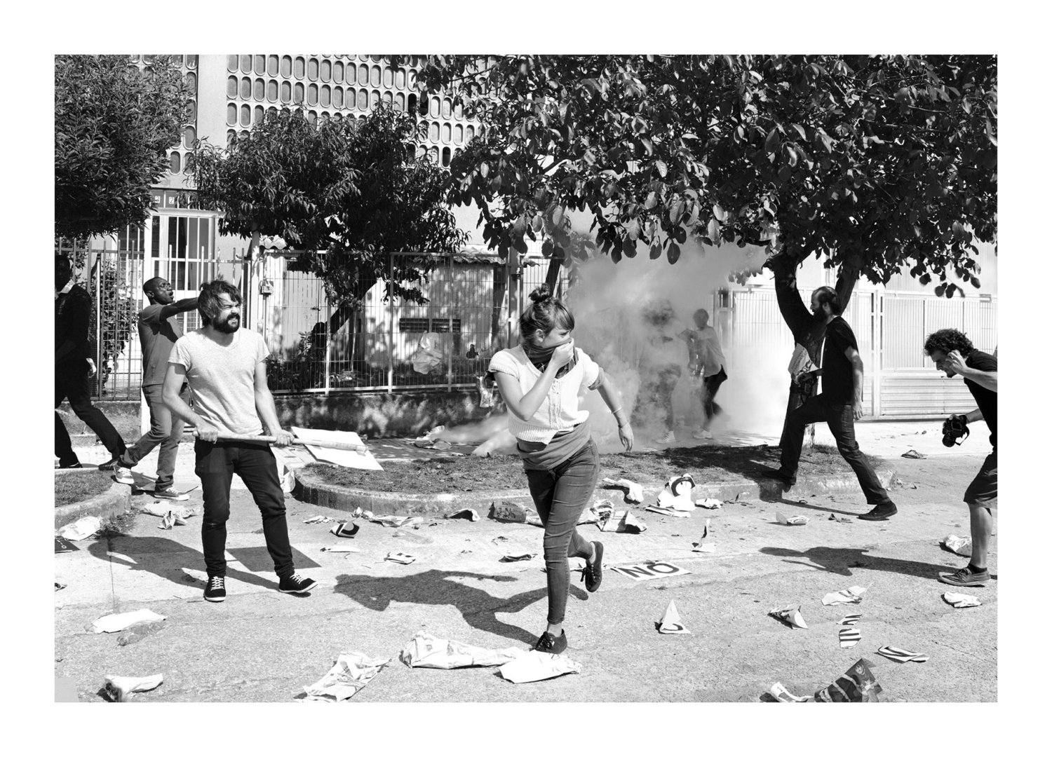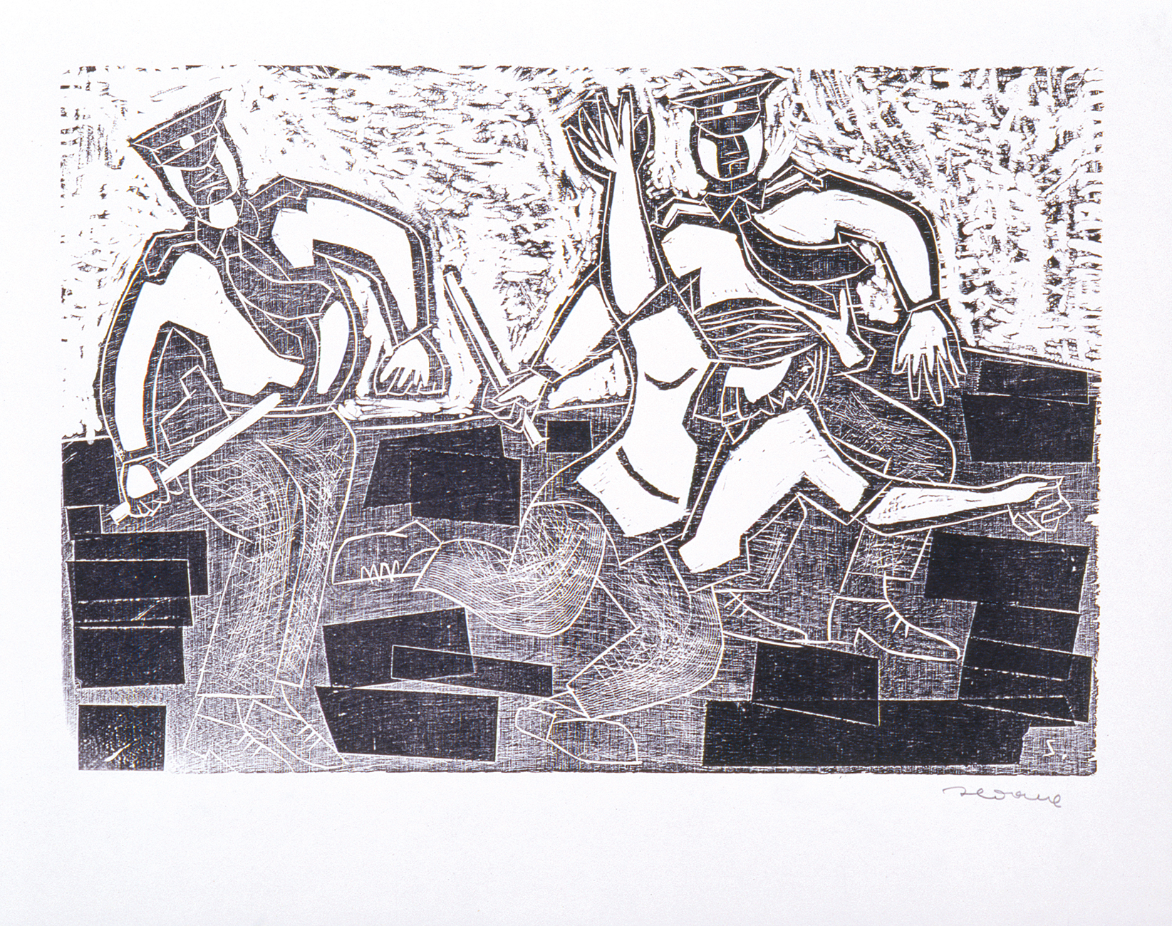 Intentando golpear ideas (Trying to crush ideas) is an image which I produced for an individual show in the Fundación Luis Seoane in 2015. Luis Seoane was one of the most well known Galican painters of his time. As a starting point for my research for the exhibition I visited the painter’s archive with the researcher Carmela Montero who specializes in his work. I chose a few of his artworks that I felt were similar to my own work to use as references in order to create an image I was going to produce for the show. Among them was an album of wood engravings created by Luis Seoane in 1972, titled “Intentando golpear ideas”. In this artwork the Galician artist represents the protests that he himself lived through during his time as a student in Santiago de Compostela.