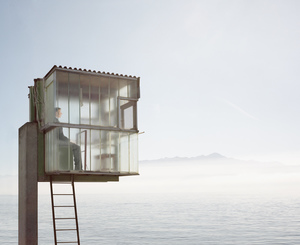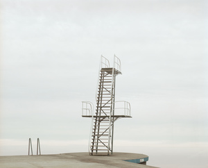 »In the Disparitions Series the artist examines architecture, people, landscape and their mutual interactions. Man appears as a flâneur in the layers of the image, randomly present or absent. The architectural complexes thus generated become compelling stage designs for human decoration in which the individual beings are imprisoned.« – Helen Hirsch http://matbr.com