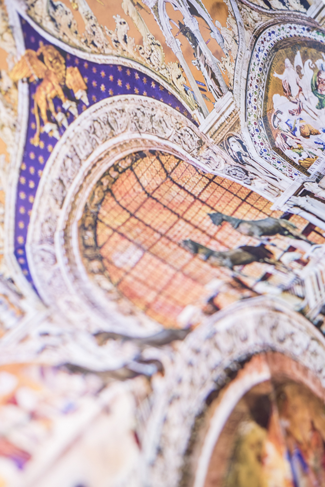 Light and stone are some of the main ingredients of Cristiano’s photographic research into the surface of Venice. Others are baroque theatre, sculpture, architecture and painting, with a constant reference to the concept of “Vanitas” (the series includes various photographs of bubbles, skulls, and other references to mortality, as opposed to the apparent immortality of marble and stone). Venice is a vain city, whose marketed beauty is also based on the asset of its precariousness (Venice is also a sinking city).