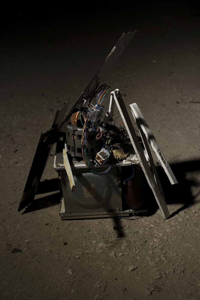 The work of Clara Remondo is the result of the encounter of these two contemporary types of scavengers: the photographer and the scrap collector. What you can see here is the partial result of a collaboration that has been going on for two years now. They look for metal and she looks for pictures. Stop for a second to compare the heaviness of metal pushed around in a cart to the lightness of a digital photograph. The photos are coated in darkness, as their work goes on mainly at night, unseen by the rest. The heaps of scrap resemble satellites and spaceships.