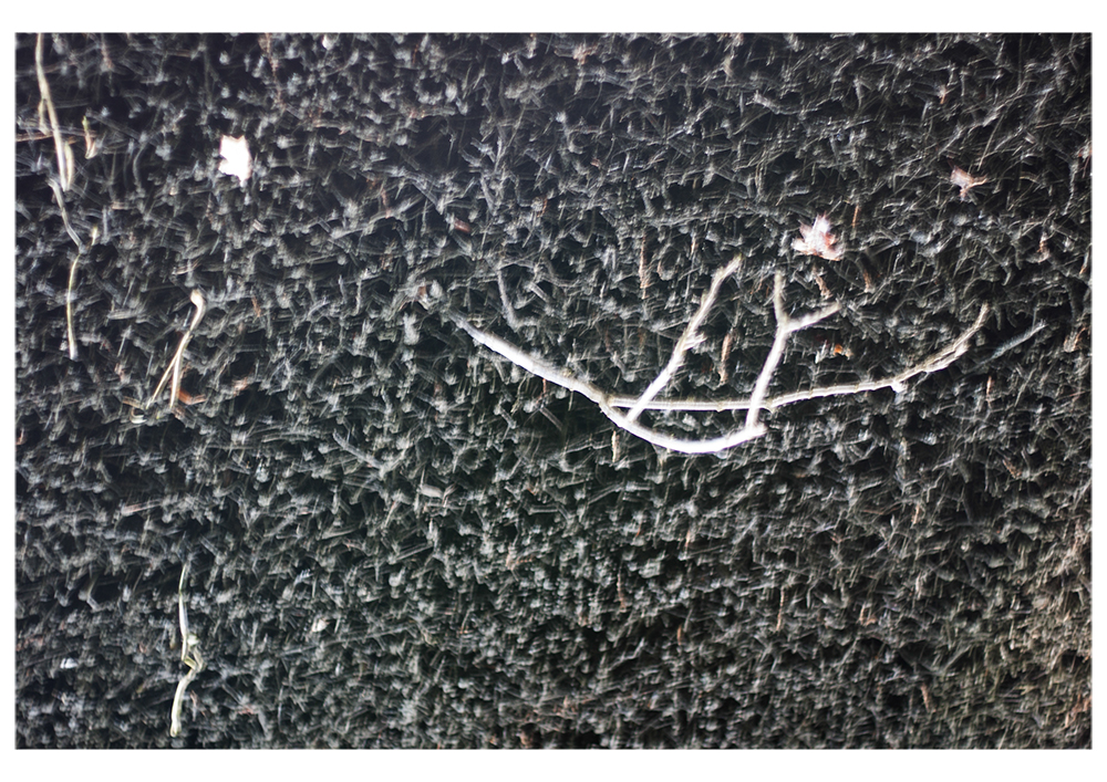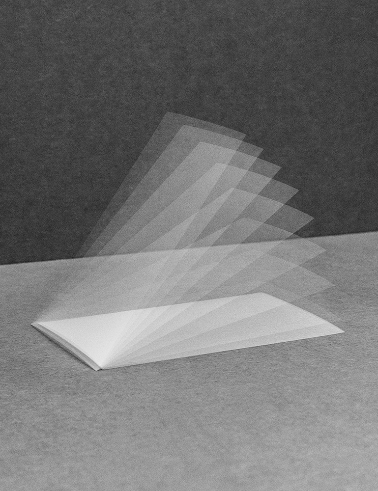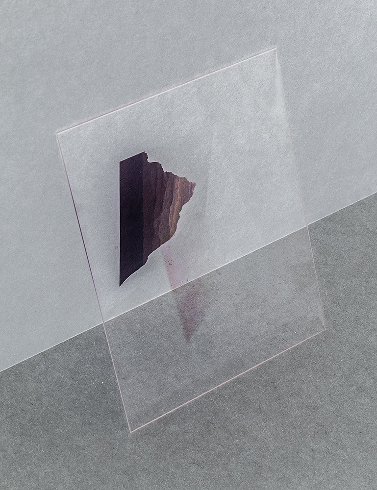 My purpose is to draw attention to the discrepancy between »concrete« perceived forms and their idea as an intangible immaterial image. I want to allow the recipient to reflect his shared perception on the representative character of the photographic image. The belief in this character bears the ability to point the index beyond the border of spatial and temporal representation. Looking at things surrounding us, one could understand their material as a natural utopia of our human concept that follows the limitation of the perception of time. Therefore I want to explore a perspective on the radical change of our concept of materiality. In order to achieve an equivalent form of the »smallest particles« of the image I print the pictures largely on semitransparent screen printing sheets and present them with enough distance to wall, floor and ceiling, so that the recipient has the possibility to approach the images from all directions and recognize the image and its backing material as independent layers.