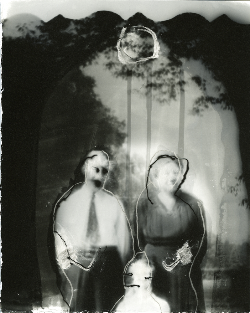 utilizing the last of his supply of Agfa paper and developer and then applied sparingly with a finger, brush, or sponge to create a new narrative